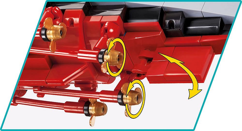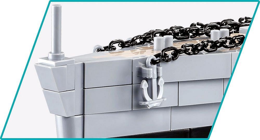 The block model HMS Hood was designed in a scale of 1: 300 and faithfully reproduces the details of its historical inspiration. The block battleship is 88 cm / 34.6 "long and 22 cm / 8.7" high. It has many moving parts, such as deck guns, rotating artillery towers, rudders and propellers. The model has been covered with high-quality prints imitating the equipment and camouflage of the ship. The prints do not wear off even during intensive use. The ship will surely delight any history, military or maritime enthusiast. It will look great on a desk, in a bookcase, in an office or in the room of a young brick enthusiast.