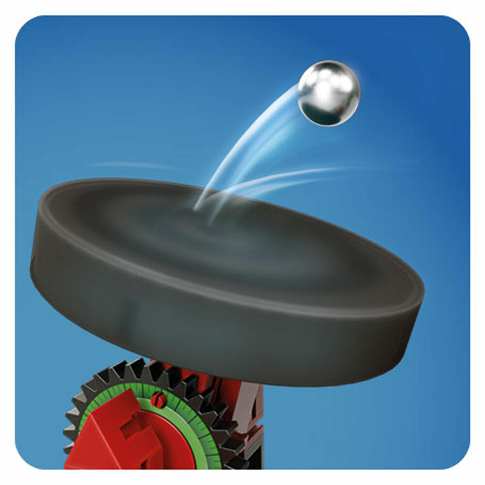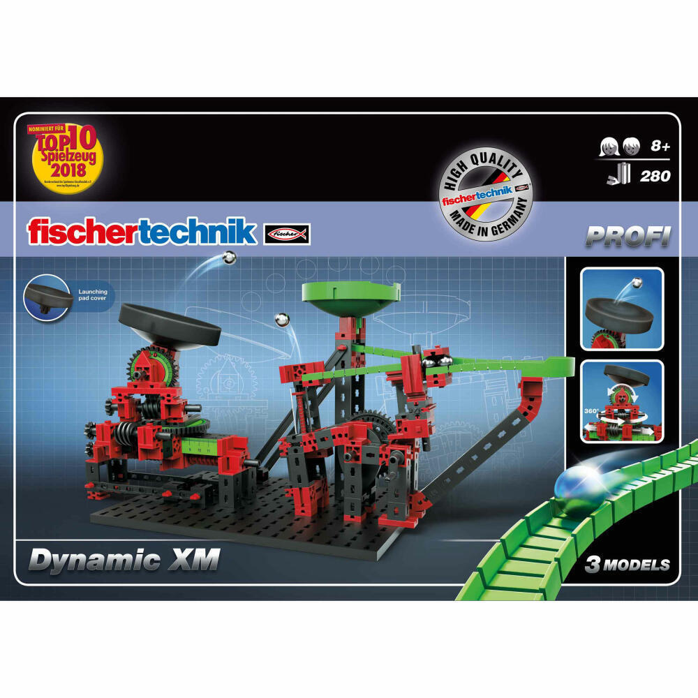 With this construction kit, pure marble run action is guaranteed. After being catapulted onto the launching pad via a mechanical clamping device, the marbles bounce off and land in the rotary funnel. To ensure that the marbles land safely in the collection tray, the launching pad can be adjusted around three axes. In total, three fun models can be constructed. For even more action, there are also free building instructions available on the fischertechnik homepage for the possible combination of this kit with the Dynamic L2 or Dynamic XXL.