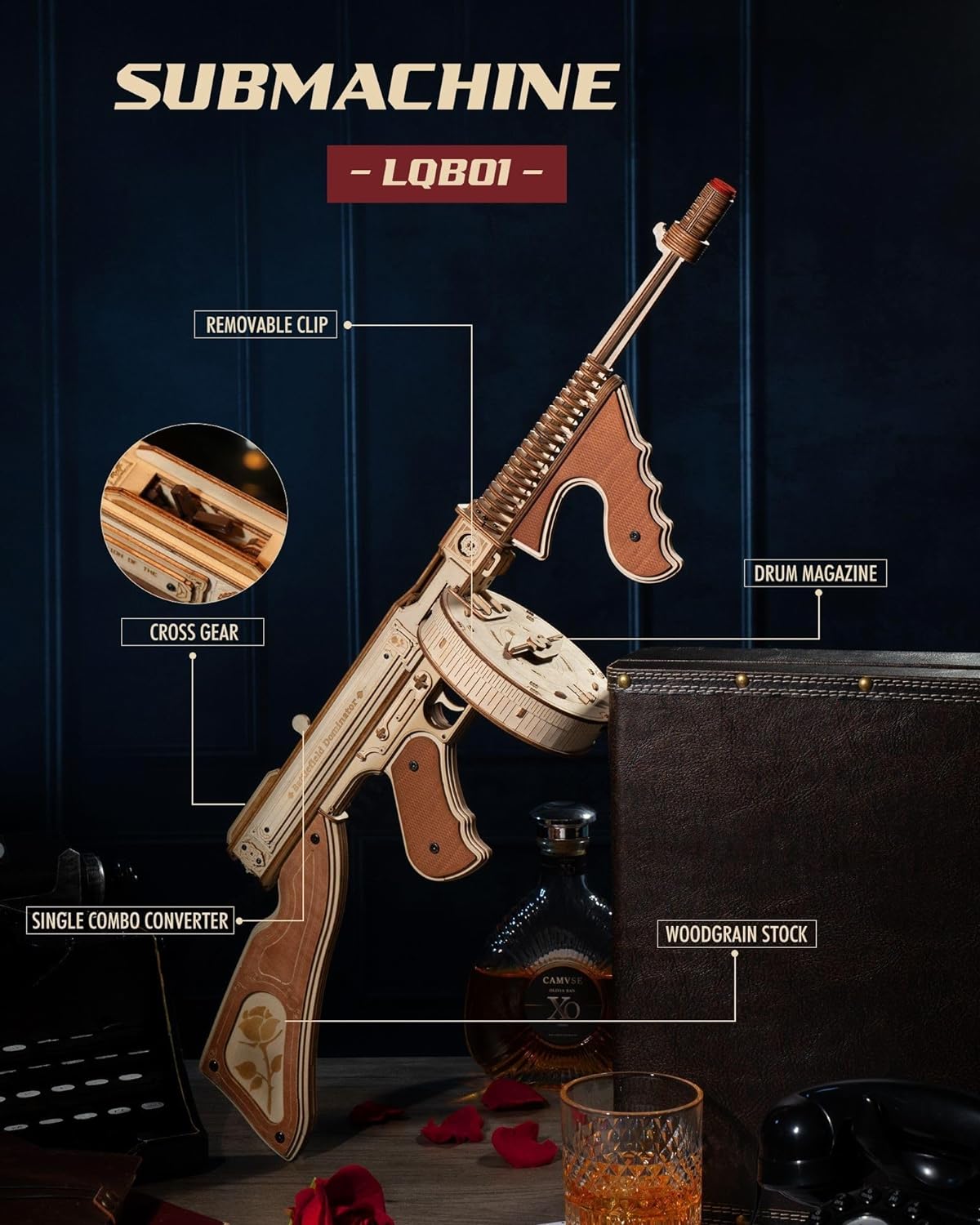 Experience the thrill of a submachine gun firing with the ROKR Thompson Wooden Toy Gun. When shooting, paper shells will eject constantly, simulating the firing scene. *This toy gun is intended solely for play, ensuring safety and harmlessness.