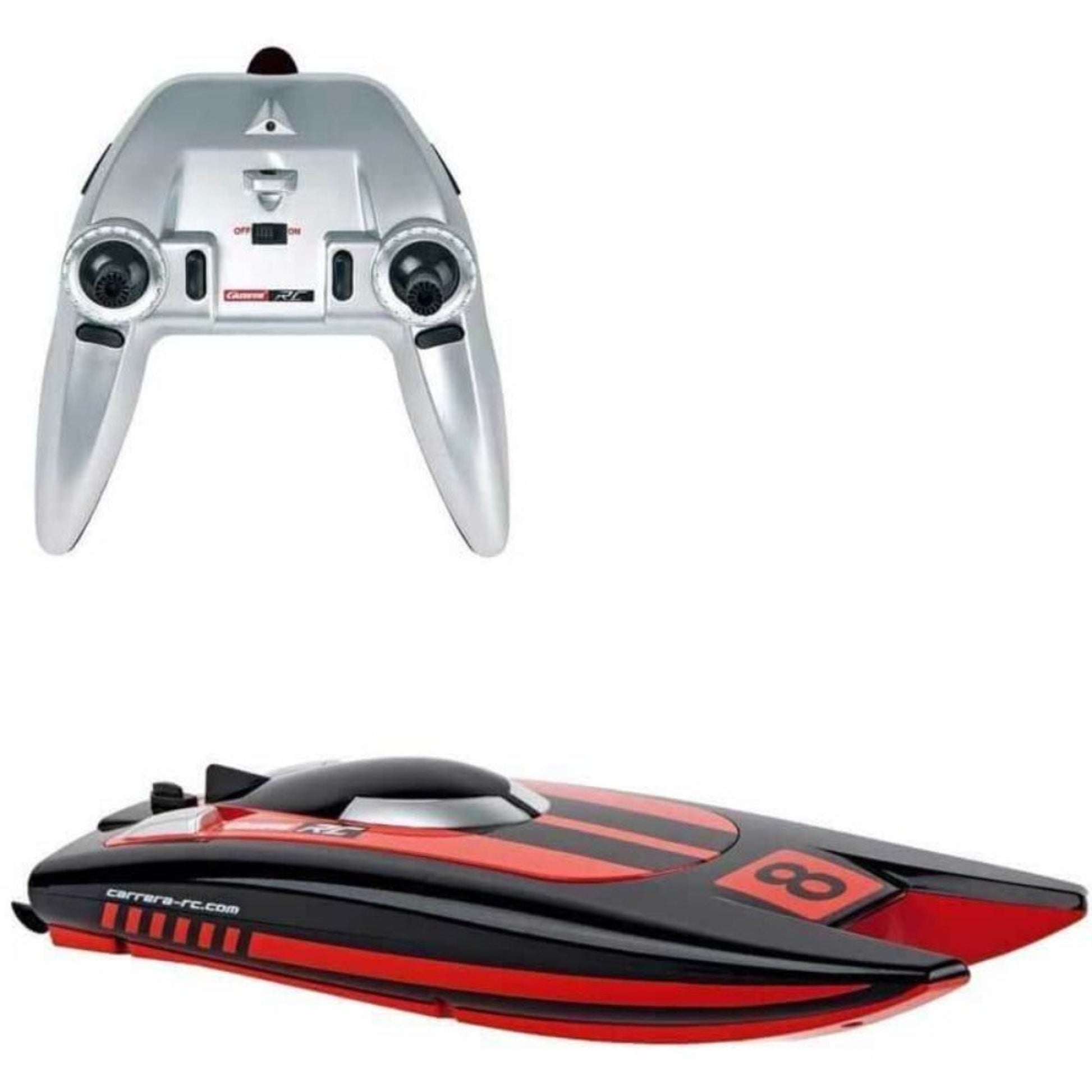 The new Carrera RC Race Catamaran is perfect for fun on lakes or in pools. This lively boat thrills with a stylish red-and-black racing livery and speeds of up to 10 km/h. When racing across the surface of the water, you and your friends will be boats ahead of the others as you drench them in your wake.