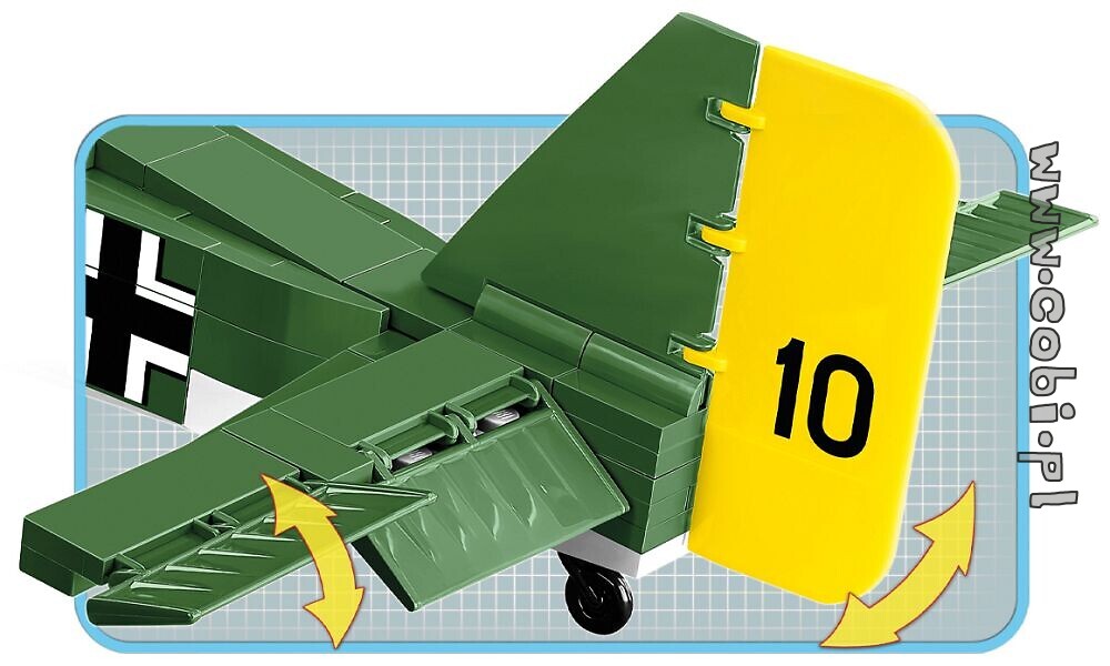 The Junkers JU 52 is the most recognisable three-engine German plane from World War II. Designed to carry passengers and cargo, it has been perfectly suited for military aviation. In the initial phase of the war it was also used as a so-called auxiliary bomber. After modifications it towed gliders of landing troops. JU 52 planes transported numerous landing units on all war fronts. The most famous operations in which JU 52 took part were: the attack on Greece, "Operation Merkur", i.e. landing in Crete and help for the 6th army of Field Marshal Paulus, cut off at Stalingrad. After World War II JU 52 was still produced in France under the name AAC. 1 Toucan and in Spain as CASA C.352-L. Individual units can be found in operation until today! The block model has many movable components such as rotating wheels with rubber tyres, movable propellers and ailerons. Openable doors to the transport compartment and the cabin allow the pilot and German parachutist (Fallschirmjäger) to be placed inside. The block model was produced in the painting used by the Luftwaffe during the landing in Crete. For added detail we use printed blocks rather than stickers. This not only adds more detail into the model but also gives more durability during play. It is a great toy for all the youngest aviation enthusiasts. Thanks to the faithfully reproduced proportions and details of the aircraft, the model will be a perfect decoration for every collection of young and adult history and aviation enthusiasts.
