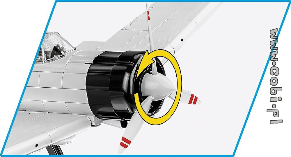 Assembling block fighters from World War II is a great way to spend time and pursue a passion for history and modeling. The set of Mitsubishi A6M2 construction blocks contains 347 elements and one pilot figure. The fighter plane model from COBI was created with attention to the smallest details. The plane has a movable propeller and ailerons. Its rotating rubber tyre wheels slide out of the undercarriage in the take-off or landing position. The cabin can be opened to put at the controls a figure of a pilot, who has an accurately reproduced uniform and a print on the back! The plane has been covered with high-quality prints that do not wear off even during intensive use. The set also includes a special stand, which makes the display of the model more attractive, and a plate with the name of the plane. The block model of the Japanese fighter will surely satisfy young aircraft fans as well as older aviation and history enthusiasts and collectors.