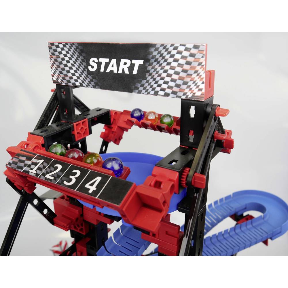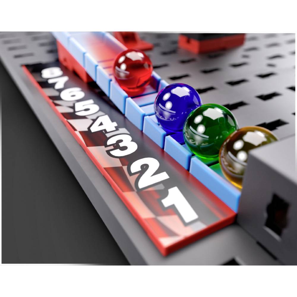 Designed for single players, groups of friends, and even teams, the fischertechnik Marble Competition lets you build exciting racetrack models for hours of interactive entertainment! The building kit includes three completely different action-filled models. Once the track is built, the fun really begins with exciting races! Kit highlights include the wide, flexible high-speed tracks and wide 180-degree curves for daring passing manoeuvres. The colourful marbles also add a lot of fun, because each player picks a colour and then watches and cheers them on through the fast obstacle course. But don’t celebrate too soon – adjustable roadblocks can slow or stop the marbles, keeping the race exciting to the very end. All three models feature different racing modes with various launching devices.