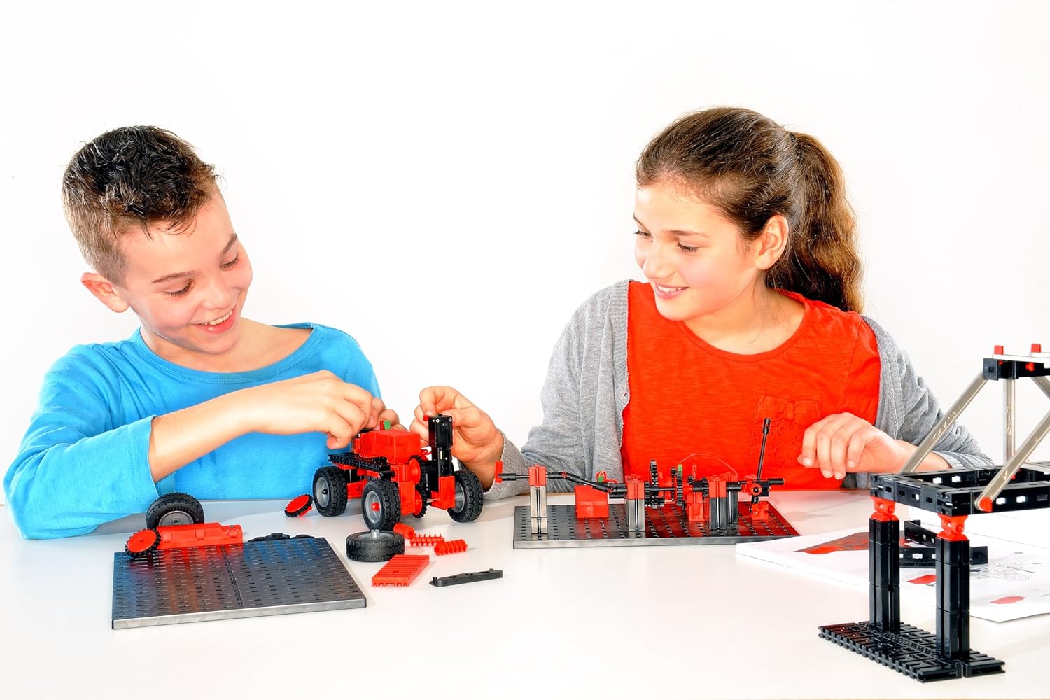 The definitive technical construction set for all future engineers and technicians: How does a shaft drive or manual transmission work ? What is a planetary gear ? How do you design a stable bridge ? The answers to these and other elementary questions from the subject areas of mechanics and statistics are found in this construction set with 30 different models. Discover the principles of technology by playing ! The eLearning portal offers exciting, instructional activity information and videos all about mechanics and statics.