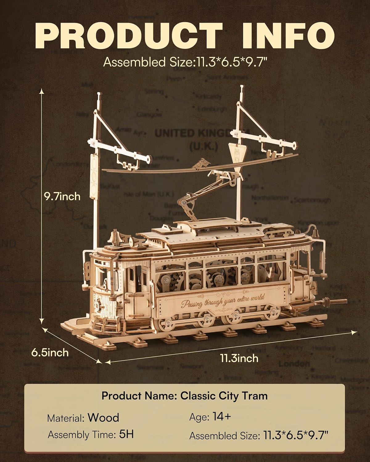 The first tram emerged in the 19th century and quickly became an indispensable mode of transportation. Today, modern trams continue to enhance people’s lives in various countries. This finely crafted scale model replicates a classic tram, thoughtfully designed with two ways to enjoy it.