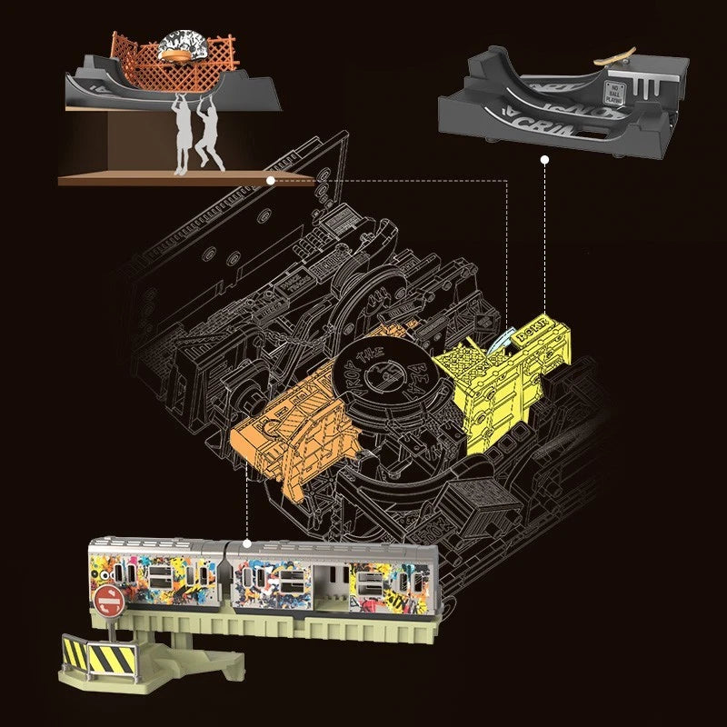 ROKR Hip-Hop Street marble run will make you reminisce about those days with your posse when breakdancing, sneakers, colourful graffiti, and hard-hitting beats were all the hype. This marble run is stylised to reflect street life, complete with a spinning record and gold chain. Providing entertainment is a dilapidated train car turned art gallery, a 3×3 basketball court, and a neon-lit skating park.