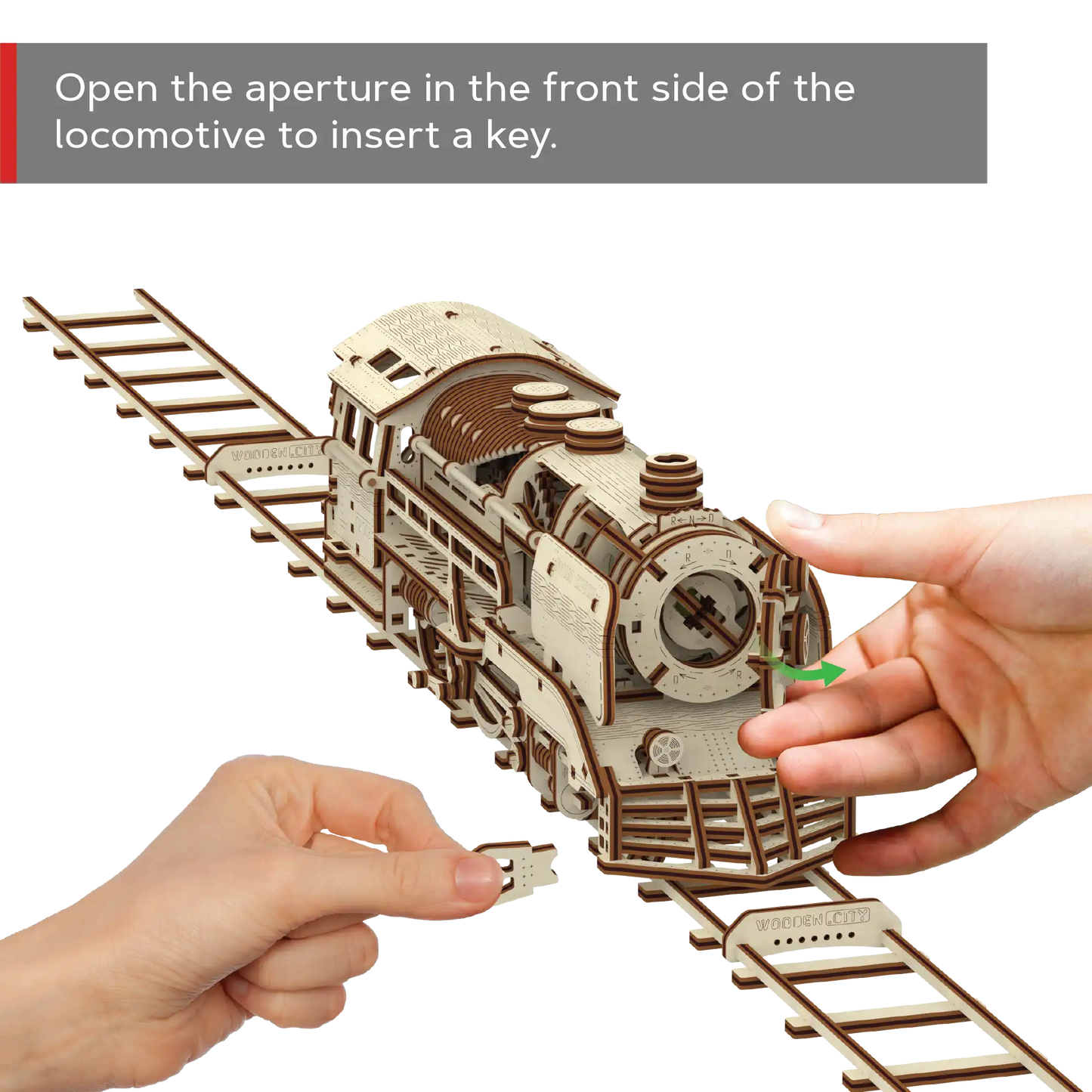The Wooden Express isn’t merely a static model; it’s a marvel that brings the bygone era of railways to life. Its doors swing open to welcome miniature passengers, figurines thoughtfully included to elevate your set-up. The model boasts a functional rubber motor, and every twist of its starting key sets the movable pistons in motion. The dashboard, complete with control elements like a steering wheel and levers, beckons you to take charge. Plus, with imitation lights and the possibility of reverse movement, this train is as close to real as a model can get.